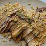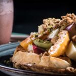 With seasonal fruits and crushed pistachios