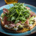 With avocado, Philadelphia, prosciutto, basil pesto and arugula.